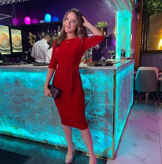 "Very flattering dress that fits perfectly, you can tell it’s high quality velvet fabric. This colour is stunning and already looking for my next occasion dress from Jolie Moi 😍"– Kirsten H.