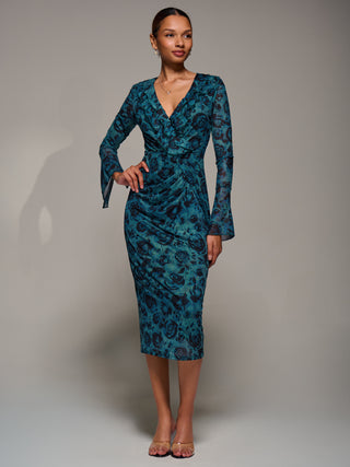 Log in to see the priceSlash Neck Fit & Flare Mesh Maxi Dress, Black Abstract
