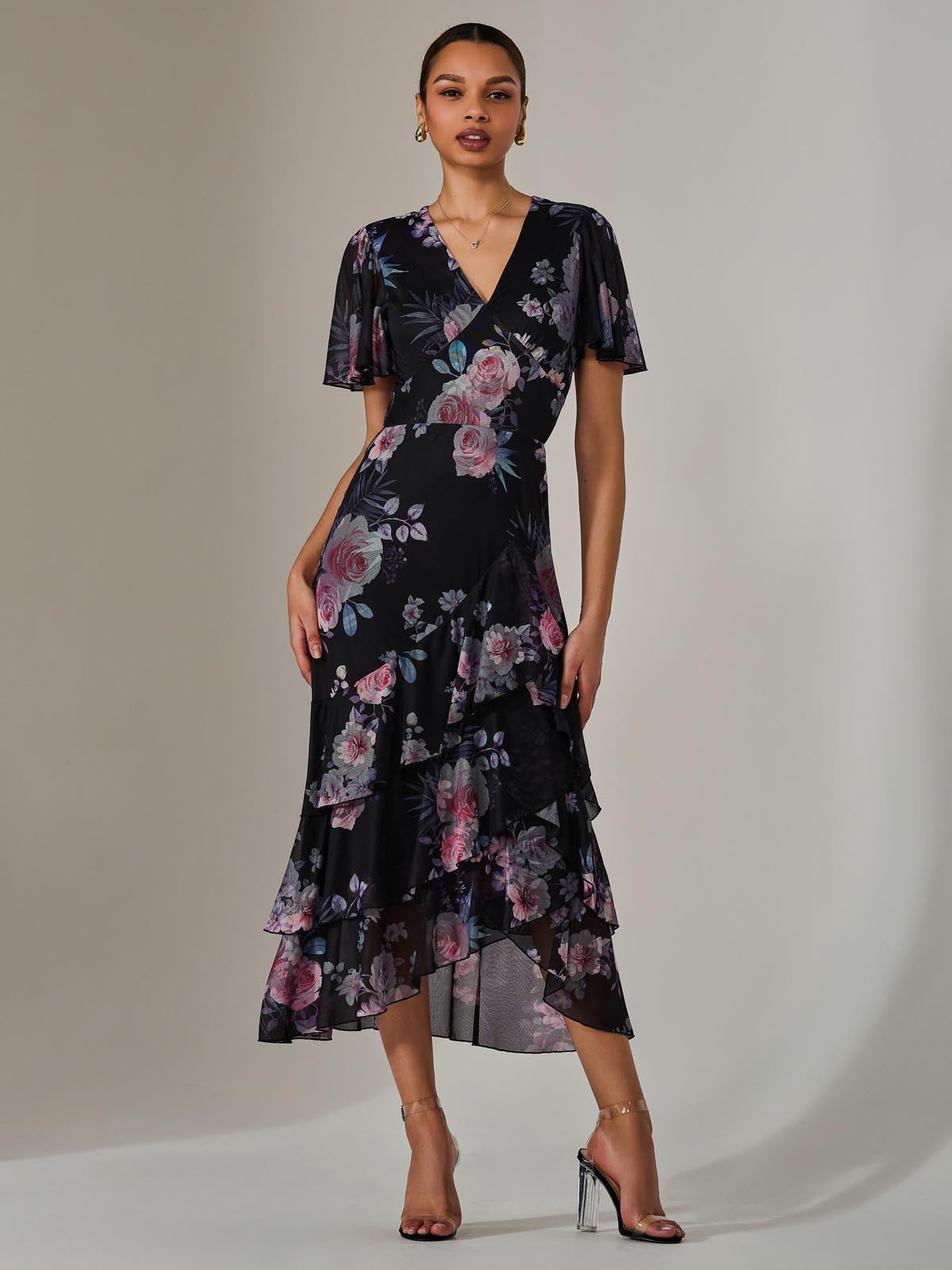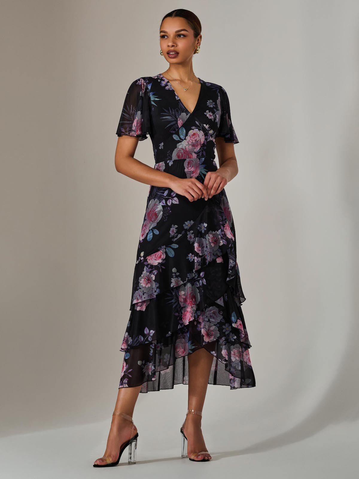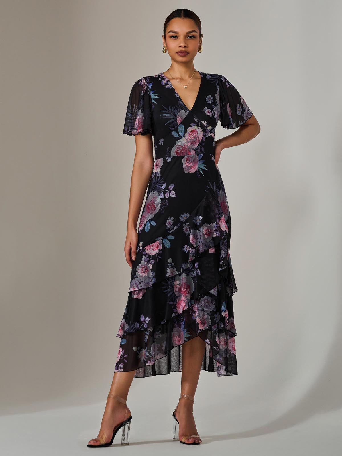 For an enchanting addition to your wardrobe, choose the Mesh Print Frill Hem Midaxi Dress from Jolie Moi. This dress features fluttery angel sleeves, romantic ruffles along the skirt, and a flattering v-neckline. Perfect to pair with wedge sandals for garden parties or afternoon teas.