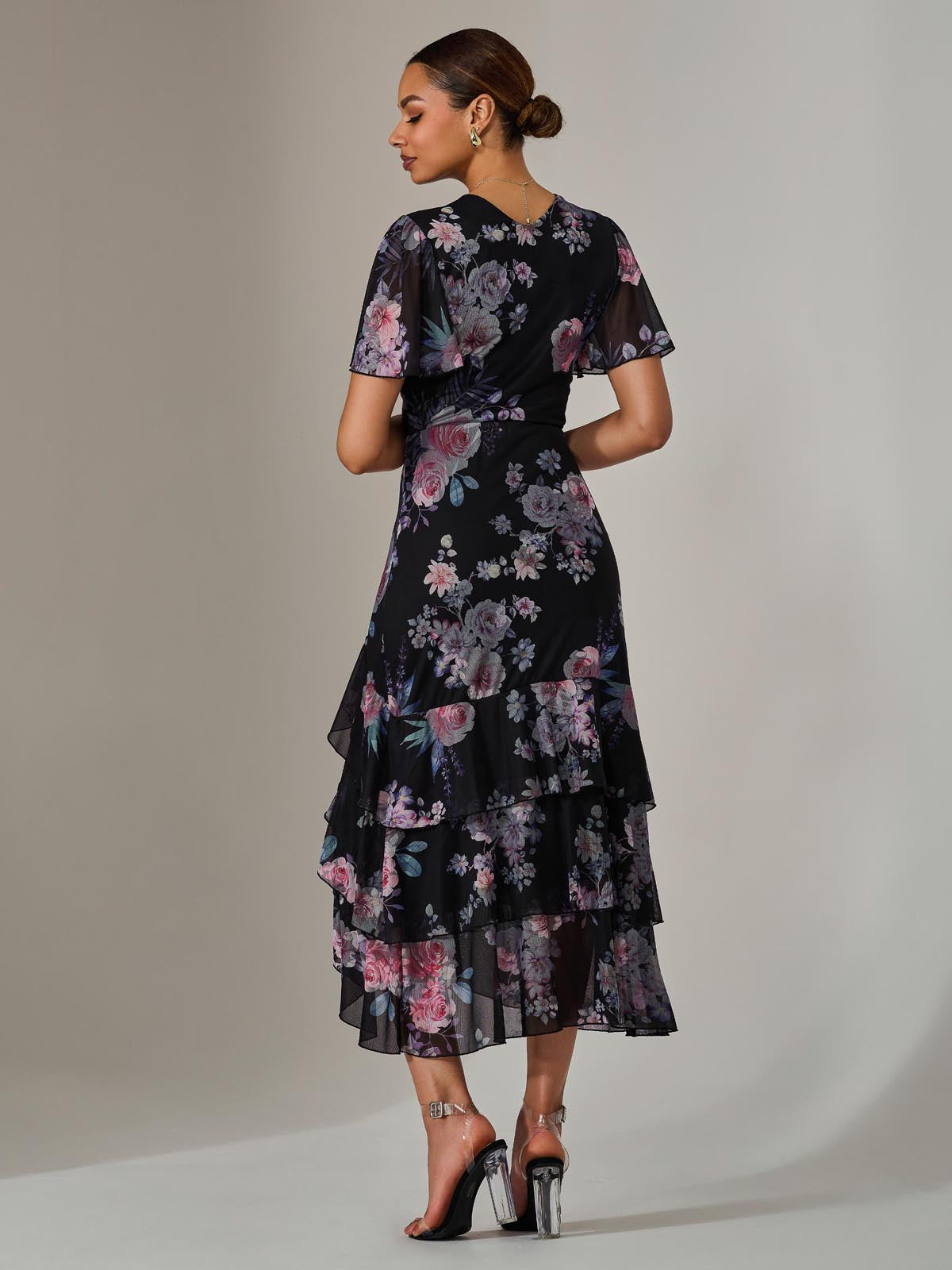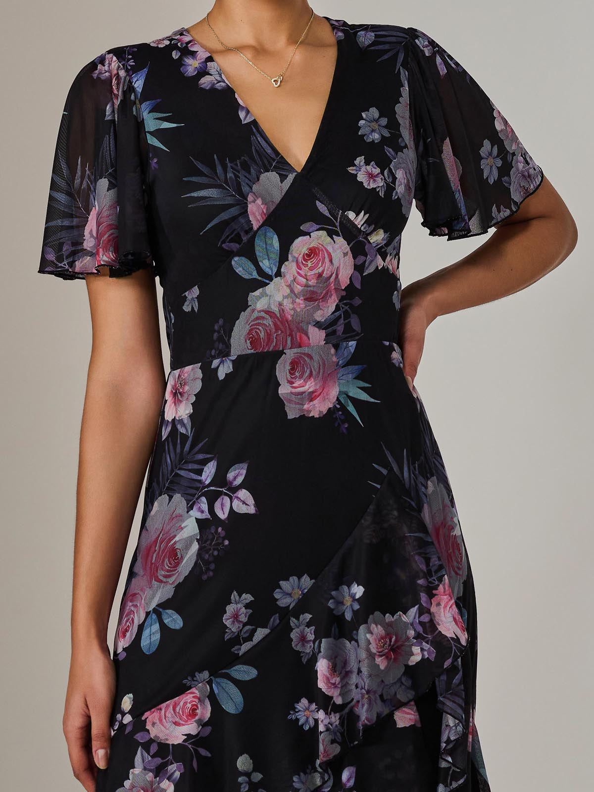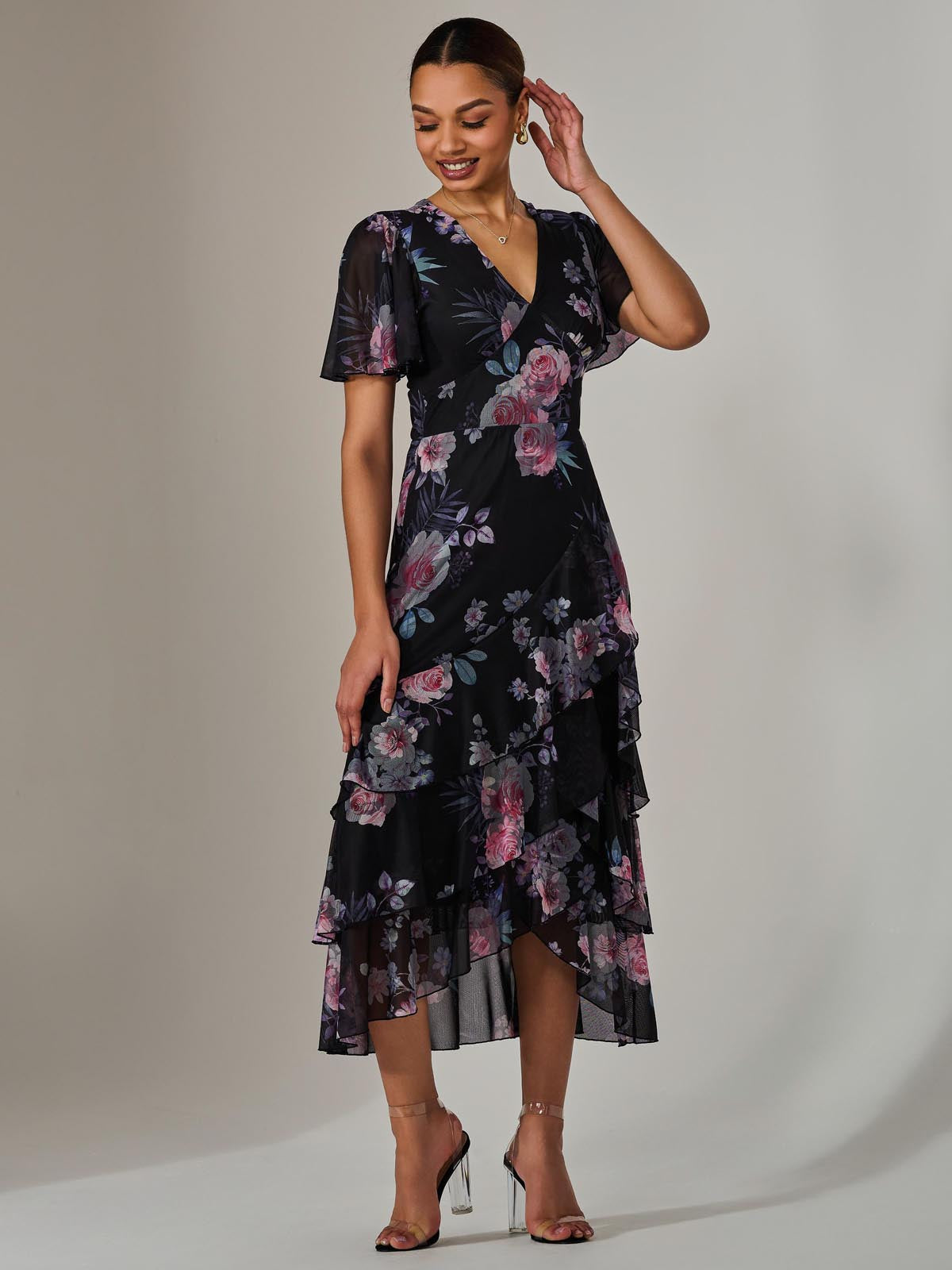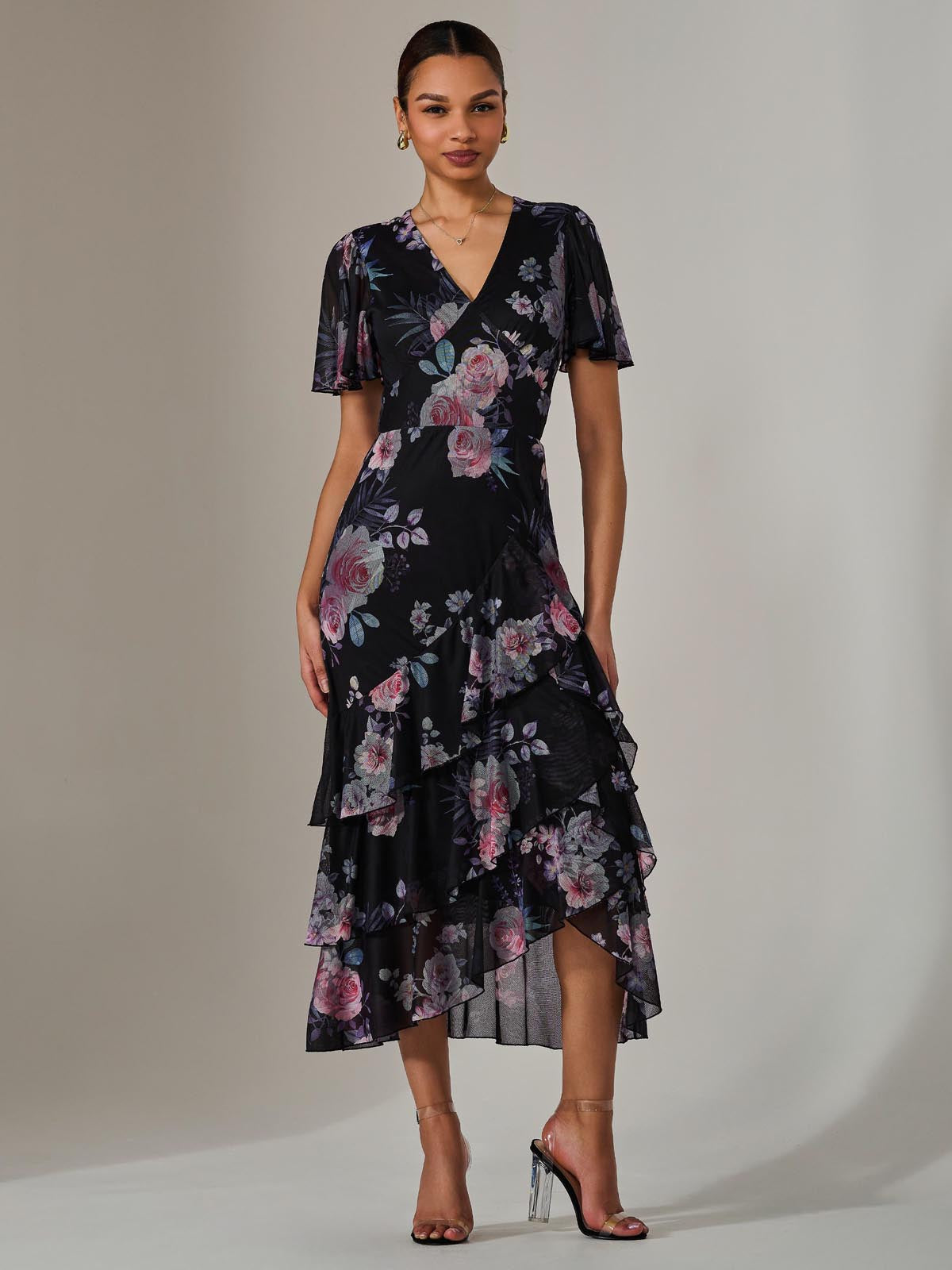 For an enchanting addition to your wardrobe, choose the Mesh Print Frill Hem Midaxi Dress from Jolie Moi. This dress features fluttery angel sleeves, romantic ruffles along the skirt, and a flattering v-neckline. Perfect to pair with wedge sandals for garden parties or afternoon teas.